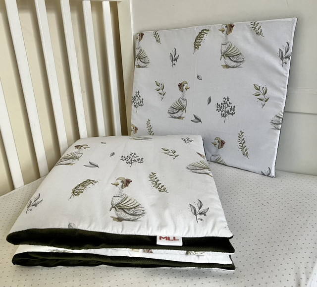 Wrap your little one in the serene beauty with this handmade "Miss Goose" kids blanket set. Featuring sweet goose illustrations amidst soft botanical elements, this set creates an enchanting atmosphere. Each piece is lovingly handcrafted, ensuring a unique and high-quality set.